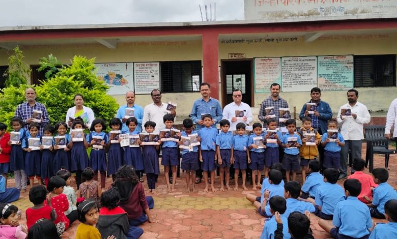 यावेळी 187 विद्यार्थ्यांना 1000 वह्या व रजिस्टर चे मोफत वाटप कंपनी मार्फत करण्यात येत आहे असे ही त्यांनी सांगितले.
