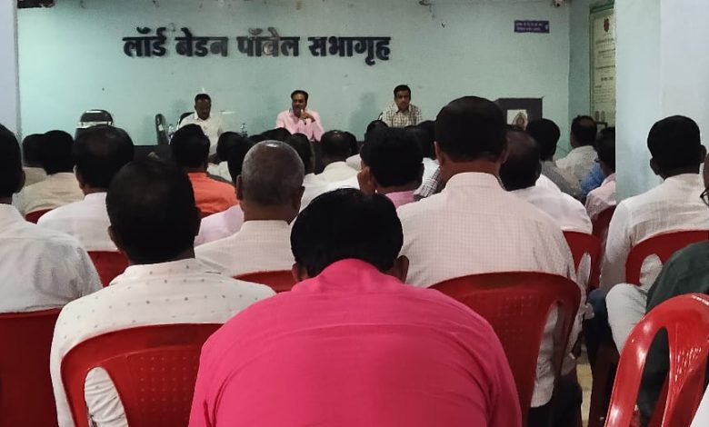 बीड चे माध्यमिक शिक्षणाधिकारी व जिल्ह्यातील सर्व मुख्याध्यापक यांची लॉर्ड बेडन पॉवेल स्काऊट भवन बीड येथे सहविचार सभेचे आयोजन करण्यात आले होते.