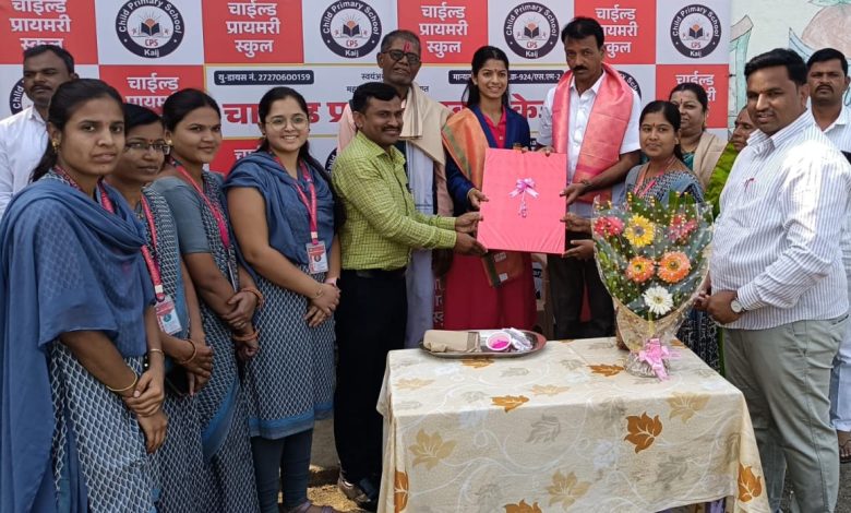 चाईल्ड प्रायमरी स्कूल केज येथे खो-खो महिला विश्वकप विजेत्या भारतीय संघाच्या कर्णधार प्रियंका इंगळे यांचा भव्य सत्कार