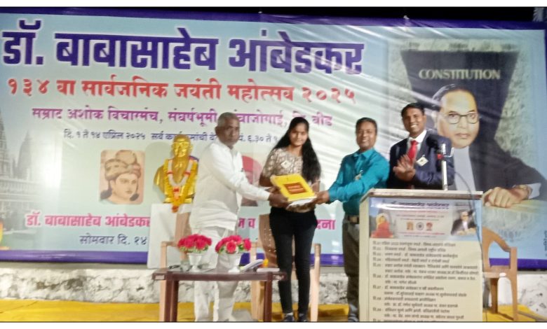 संघर्षभूमीवर १ एप्रिल पासून १४ दिवसीय भीमजयंती महोत्सव सुरू आहे. या महोत्सवात आई सेंटरचे प्रो चे संचालक प्रा.सर नागेश जोंधळे यांचे ‘ज्ञानाचे प्रतीक डॉ.बाबासाहेब आंबेडकर यांना अपेक्षित असलेला तरूण, समाज व देश’ या विषयावर उपस्थितांमध्ये चैतन्य निर्माण करणारे व्याख्यान संपन्न झाले. याप्रसंगी आई सेंटर प्रो च्या वतीने विविध क्षेत्रात उल्लेखनीय कामगिरी करणाऱ्या गुणवंतांचा विशेष सत्कार करण्यात आला.
