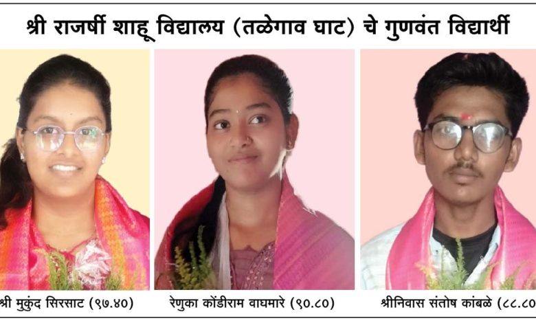 शालांत परीक्षेत श्री राजर्षी शाहू विद्यालय, तळेगाव (घाट) शाळेचे घवघवीत यश