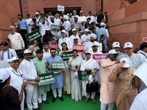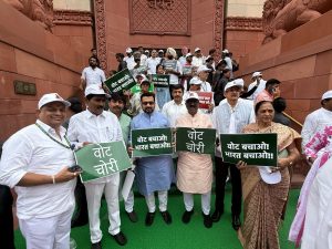 इंडिया आघाडीच्या ३०० खासदारांनी संसदेचे मकरद्वार ते निवडणूक आयोग कार्यालयापर्यंत मोर्चा काढण्यास सुरुवात केल्यानंतर दिल्ली पोलिसांनी अडवला. खासदारांनी हातामध्ये ‘सेव्ह व्होट’चे बॅनर घेतले होते. तथापि, दिल्ली पोलिसांनी सांगितले होते की इंडिया आघाडीने या मोर्चासाठी कोणतीही परवानगी घेतली नाही. बिहारमधील मतदार यादीतील अनियमिततेच्या आरोपावरून काँग्रेस नेते राहुल गांधी यांच्या नेतृत्वाखाली ३०० विरोधी खासदारांनी दिल्लीत पायी मोर्चा काढला आहे. या मोर्चात बीडचे खासदार बजरंग सोनवणे आघाडीवर होते. तर संसदेच्या पावसाळी अधिवेशनाचा १६ वा दिवस असून लोकसभेत प्रश्नोत्तराचा तास सुरू होताच विरोधी खासदारांनी गोंधळ सुरू केला. खासदारांनी ‘वुई वॉन्ट जस्टिस’च्या घोषणा देत सभागृहाच्या वेलमध्ये पोहोचले. यानंतर सभापती ओम बिर्ला यांनी लोकसभा दुपारी दोन वाजेपर्यंत तहकूब केली. लोकसभा आणि राज्यसभेचे कामकाज सकाळी ११ वाजता सुरू झाले. लोकसभेत प्रश्नोत्तराचा तास सुरू असताना विरोधकांनी ‘आम्हाला न्याय हवा आहे’ अशा घोषणा दिल्या. यावेळी माध्यमांशी बोलताना खा.बजरंग सोनवणे म्हणाले, इंडिया आघाडीचा मोर्चा निवडणूक आयोगावर आहे. मात्र, याआधी पोलीस बळाचा वापर करण्यात येत आहे. निवडणूक आयोगाला राहूल गांधींवर बोलण्याचा आधिकारी नसून कायदा हा निवडणूक आयोगाच्या घरचा नाही. त्यांनी भाजपसाठी काम करणे सोडावे. निवडणूक आयोग भाजपची बी टिम असल्याचा उल्लेखही खा.सोनवणे यांनी केला.